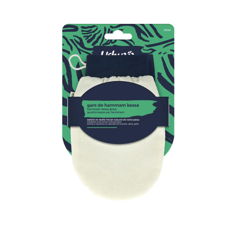 Le Gant de Hammam Kessa exfolie et révèle l’éclat naturel de la peau. Il active la circulation sanguine, rafraichit votre peau et favorise le renouvellement cellulaire naturel.