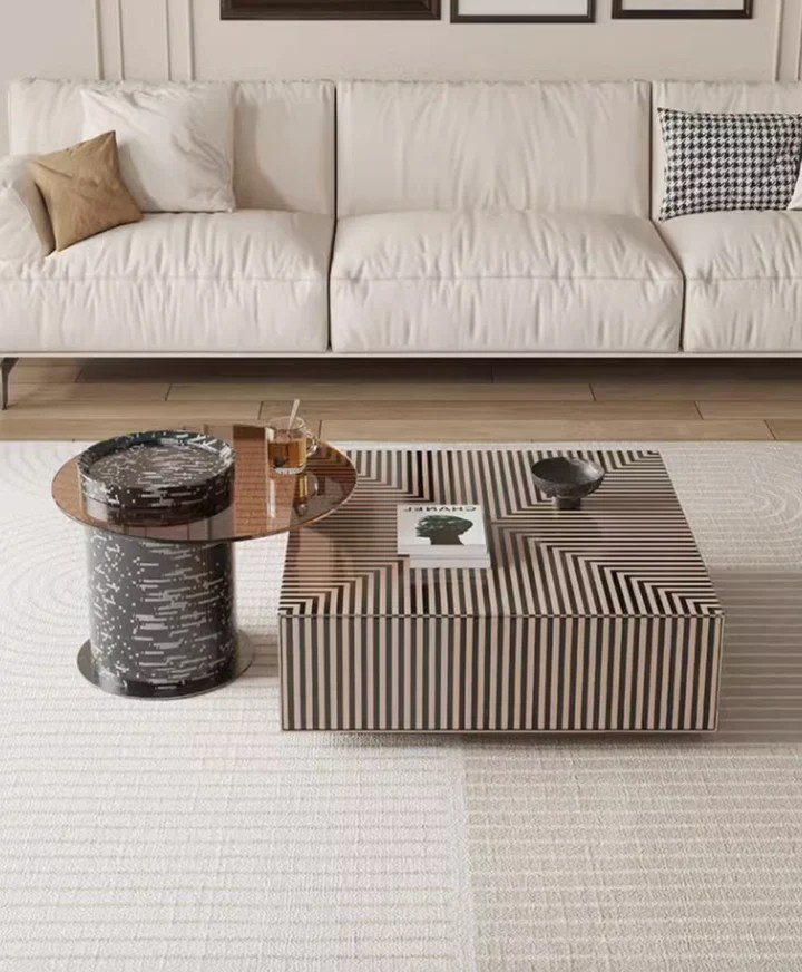 Cette exquise table basse antique apporte une touche d’élégance intemporelle à tout intérieur, mettant en valeur un savoir-faire artisanal complexe et une riche histoire. Son design noir et blanc, qui contraste avec la modernité de la table, sublime les intérieurs contemporains. Associé à la table basse et aux tables d’appoint assorties, cet ensemble crée un espace de vie cohérent et élégant, idéal pour recevoir ou se détendre.
