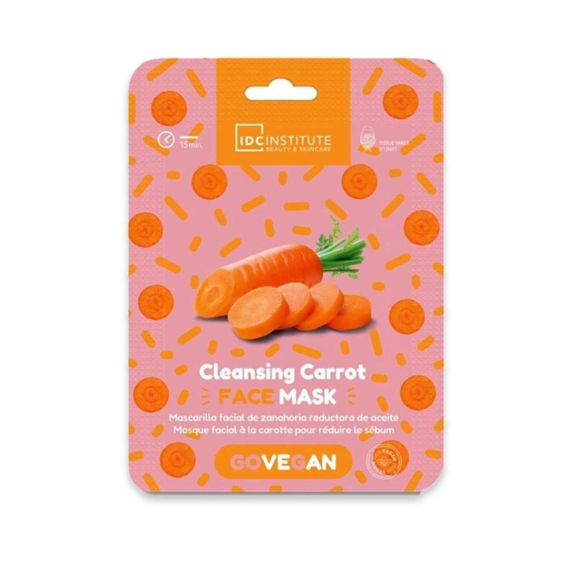 Masque végétalien en papier imprégné de carotte pour les peaux sensibles. Pour les peaux grasses.