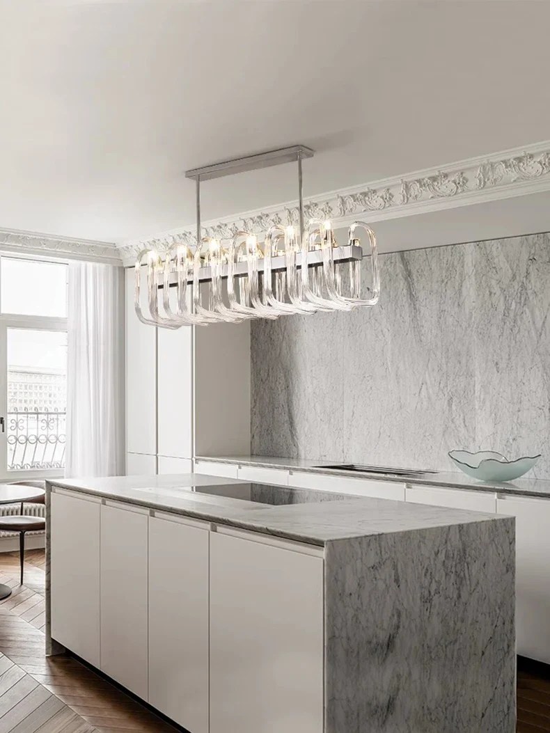 Son design épuré arbore des cristaux argentés disposés en une matrice captivante. D’une lueur radieuse, il imprègne les espaces d’une élégance moderne qui captive les sens.