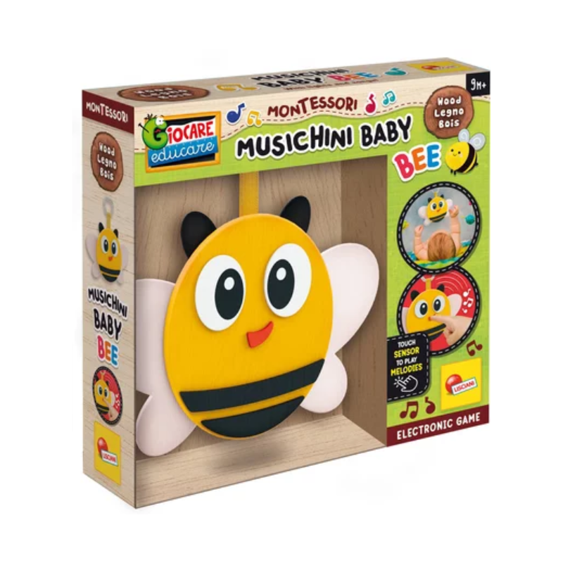 Une jolie abeille à accrocher où vous voulez ! En bois sonore et lumineux ! Grâce aux capteurs tactiles, l’enfant pourra écouter des mélodies joyeuses !
