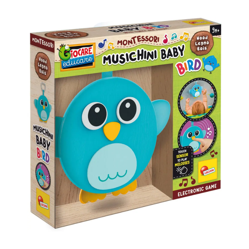 Un petit oiseau tout mignon à accrocher où vous voulez ! En bois sonore et lumineux ! Grâce aux capteurs tactiles, l’enfant pourra écouter des mélodies joyeuses !