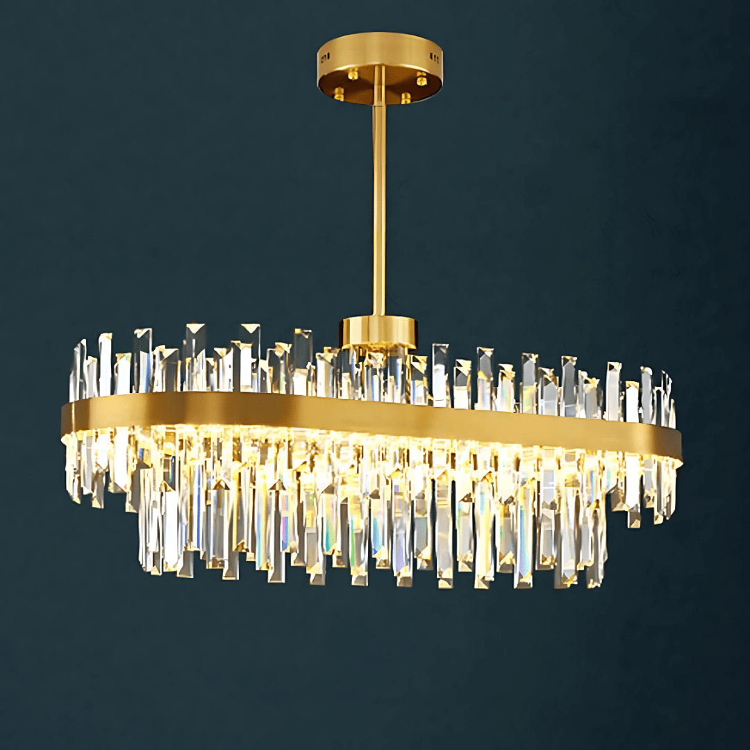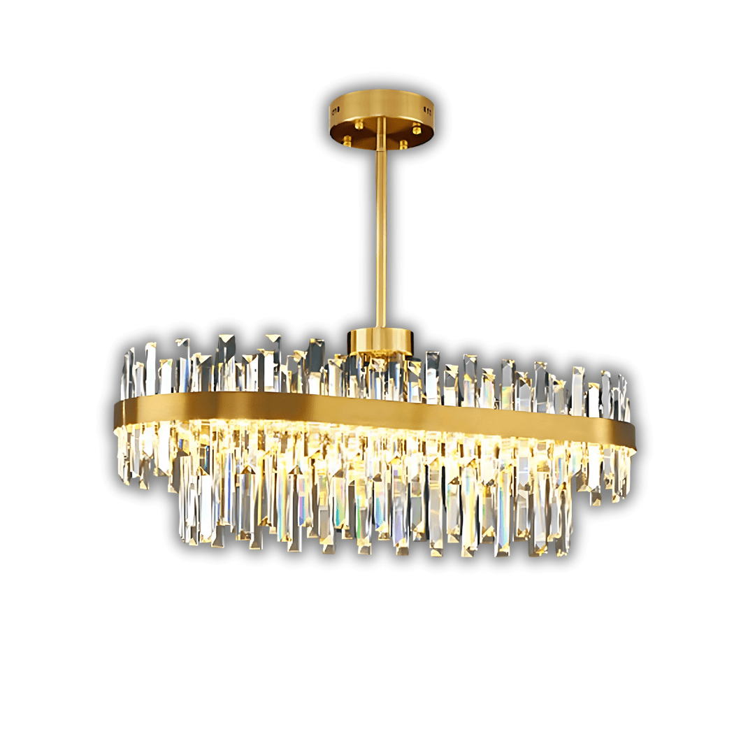 - La bande de cristal K9 importée diffuse une lumière uniforme, pour une luminosité toujours plus intense et éblouissante. Fabriquée en cristal K9, elle est polie en prisme, offrant ainsi cinq couleurs de lumière, avec des profils dorés intégrés